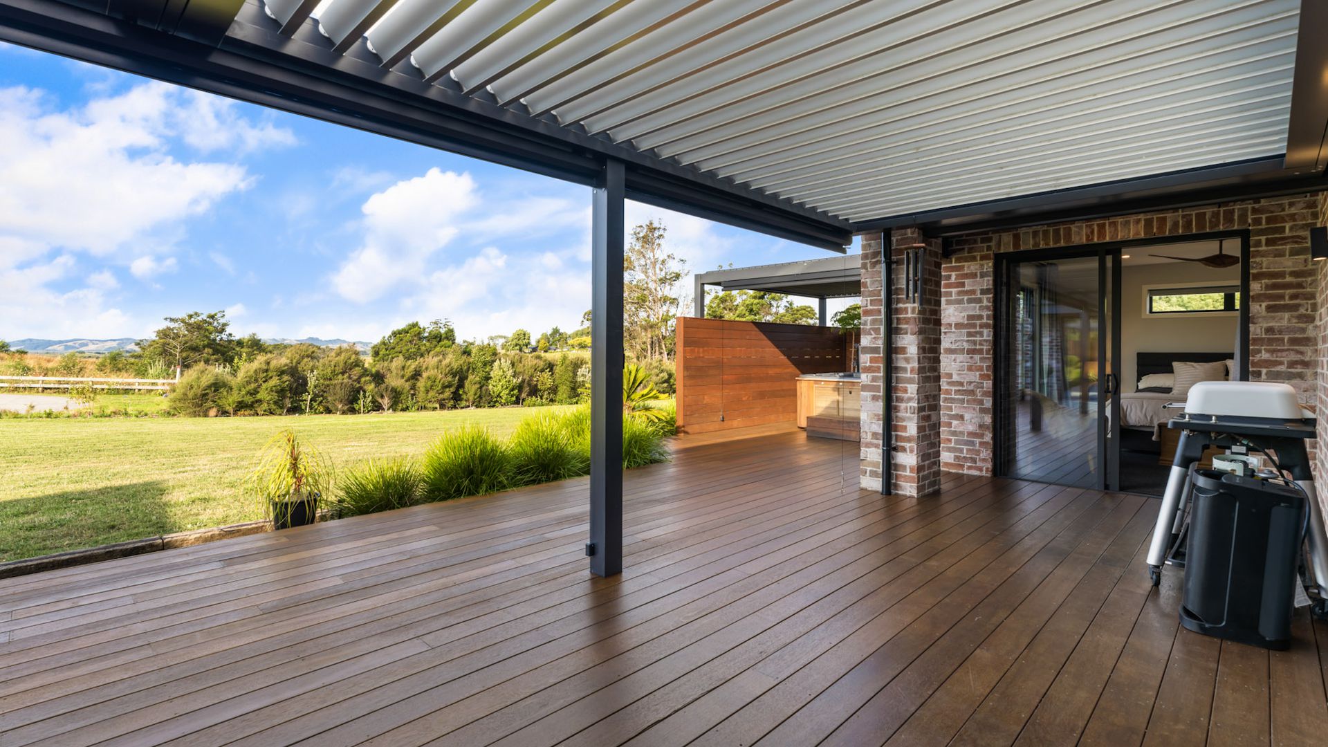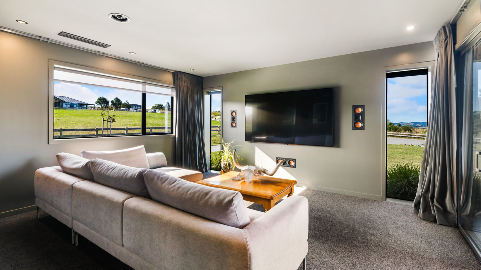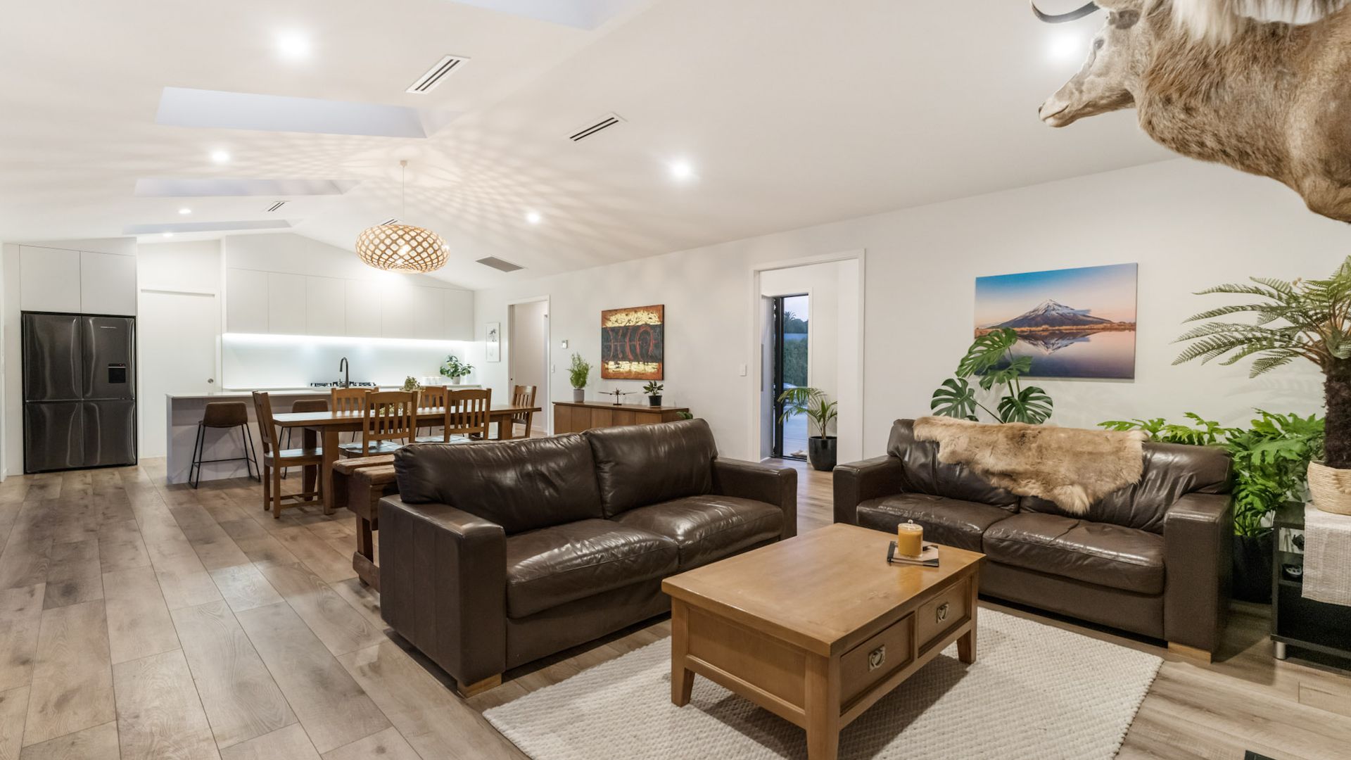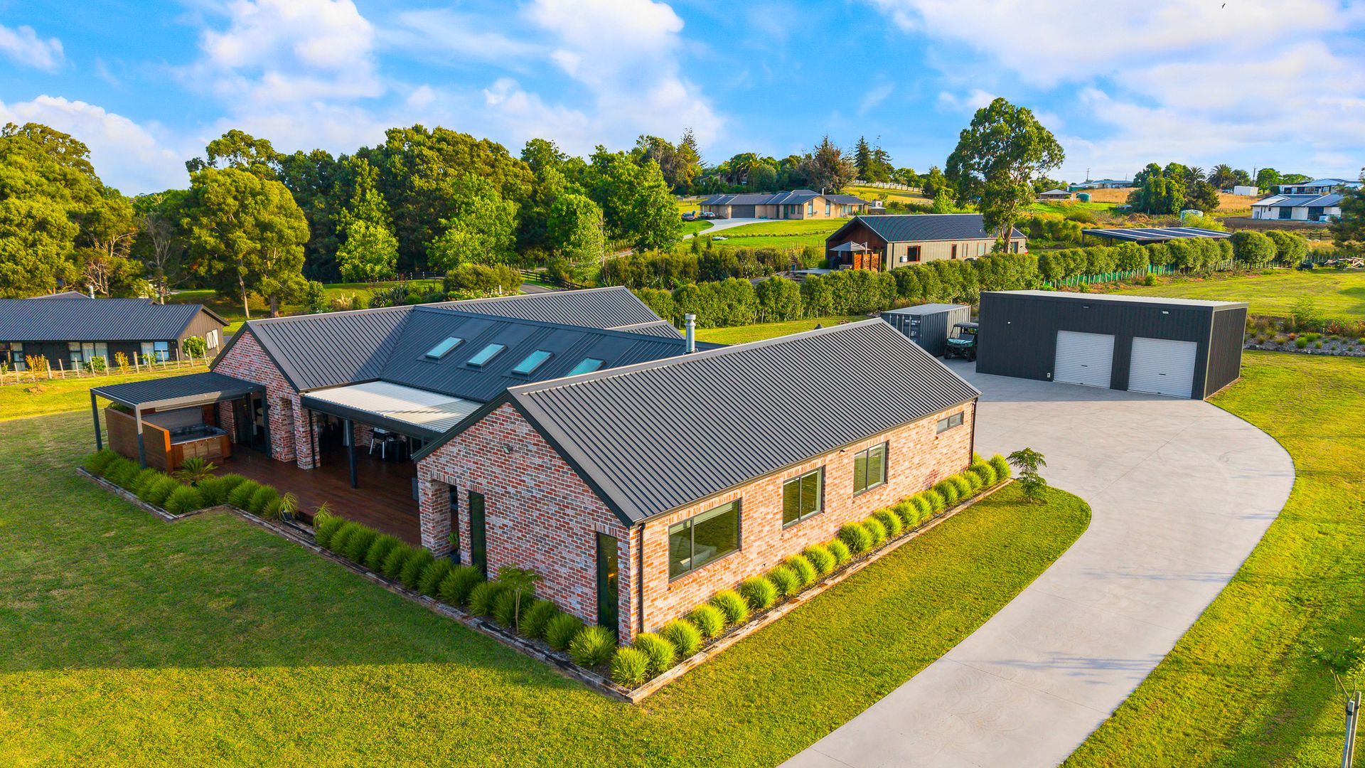 Natural light pours through dramatic skylights into the grand living zone, lifting the soaring statement ceilings and wrapping the space in warmth. Stone, timber and soft layered finishes create a feeling that’s both expansive and grounded, a space that hosts just as well as it holds everyday life. Full home ducted heating and cooling, paired with a stone set wood fire, means the home doesn’t just look good, it lives beautifully in every season. The kitchen is quietly confident. Clean, social and beautifully restrained, backed by a family sized butler’s pantry with its own sink that keeps the main space pristine. It’s the kind of layout you see in homes designed for people who entertain and enjoy family time. The media room is where the outside world disappears. Built in speakers, cinema curtains, electric blinds and immersive sound create a private theatre that turns movie nights and game days into full experiences. The master suite is its own sanctuary, privately positioned and opening directly to the deck and spa. Soft light, custom drapery, architectural ceiling fans and hotel-level bathrooms make this feel less like a bedroom and more like a exclusive haven. Every bathroom continues the story. Floor to ceiling tiles, floating vanities, statement tap ware and spa inspired finishes bring a sense of calm luxury to everyday living. Outside, the home transforms again. Kwila decking flows beneath electric louvres and outdoor blinds, creating a series of outdoor rooms designed to be used, not just admired. Morning coffees, sunset drinks, long lunches and spa nights all happen here. The landscaping, driveway, decks and outdoor living zones were all designed and built by the owners themselves, carefully considered, never generic. And then there’s the workshop. A full double-bay space with hoist and room for a proper man cave, projects, toys or business, a place for your classic cars to call home This is a property for people who don’t want ordinary. For those who value space, design, craftsmanship and presence. This isn’t just somewhere to live. It’s somewhere you arrive. A design that refuses to blend in. Features you will love - Volted Ceilings - Stone Famed Yunca Wood Fire - Stacker Doors - Main Living and Media Room - Electric Blinds - Media Room - Gas Cooking / Water System - Butlers Pantry with Sink - Handsfree Kitchen Waste Bins - Built in Surround Sound System - Daikin Heating and Cooling Home Ducted System - Glassless Showers - Large Free Standing Bath - Large Laundry area in the Garage built with the intention to use as a home salon - Ample Additional Inside Storage Cupboards - Attic Storage - Pull Down Stairs - Italian Brick Cladding - Long Run Colour Steel Roofing - Exterior Feature Lighting - Security System / Lights - Car Hoist - 2 x 25,000L Water Tanks - Bio Septic System - Keyless Entry - 2 Large Flood Lights on Workshop Doors - Outdoor Electric Blinds - Magnolia Lined Driveway - Garden Beds Framed in Railway Sleepers - Native Privacy Planting - Garden Shed - Situated at the end of an Exclusive Lane - 10 Year Master Build Location - Minutes drive - Main Street - Minutes drive to the North and South Motorway on/off ramps - 30 Minutes Hamilton - 30 Minutes Auckland - 30 Minutes Pukekohe - 10 Minutes Hampton Downs Contact Kirsten or Aidan to arrange a private viewing. - Flexible Settlement and Deposit Terms. - All Agent Conjunctional Welcome