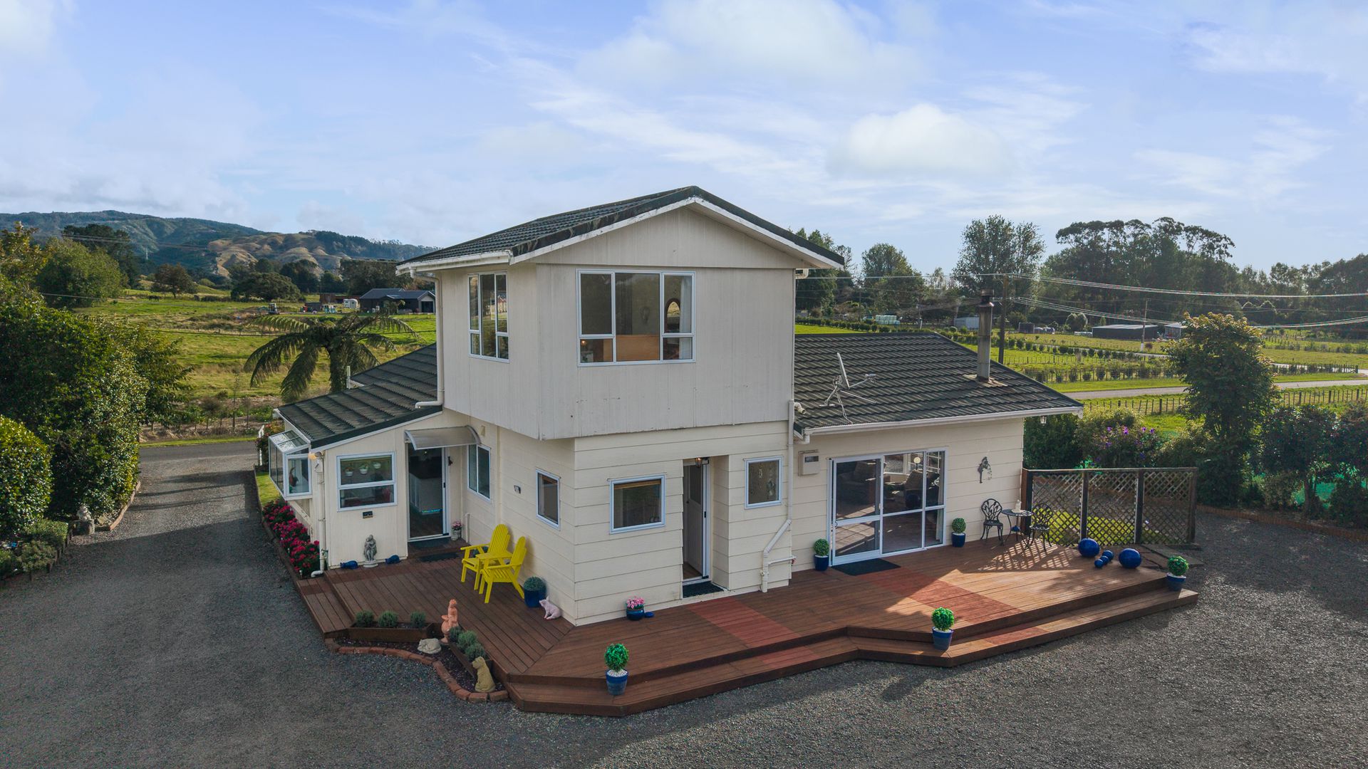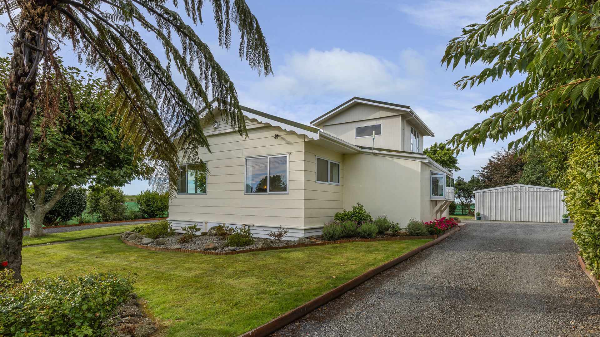 Downstairs, the kitchen and three bedrooms feature double glazing for added comfort. A modern bathroom, separate toilet, and functional laundry make daily life easy and practical. Heating is well covered with a wood burner, HRV system, and heat transfer to three bedrooms and the kitchen — keeping the whole home cosy year-round. New carpet (2019) and quality window furnishings (2025) add the finishing touch. These are just some of the updates, you are really spoilt for low maintenance living. But this is where it gets exciting, you have: - Two double garages (Green and Silver) - Another garage with office and open-plan one-bedroom dwelling with bathroom and kitchenette Whether it’s multi-generational living, a home business, Airbnb potential, or rental income — the options here are real and ready. The water supply is boosted with an additional tank and UV steriliser system, supporting your established orchard and grounds. Mature gardens and bush walks create your own slice of paradise — peaceful, private, and beautifully established. The loop driveway makes access effortless and adds to the feeling of arrival. This is secure, spacious, self-sufficient living just minutes from town. And here’s the key — the vendors have found their next home. Time is of the essence. Secure your family’s future on Florida.
