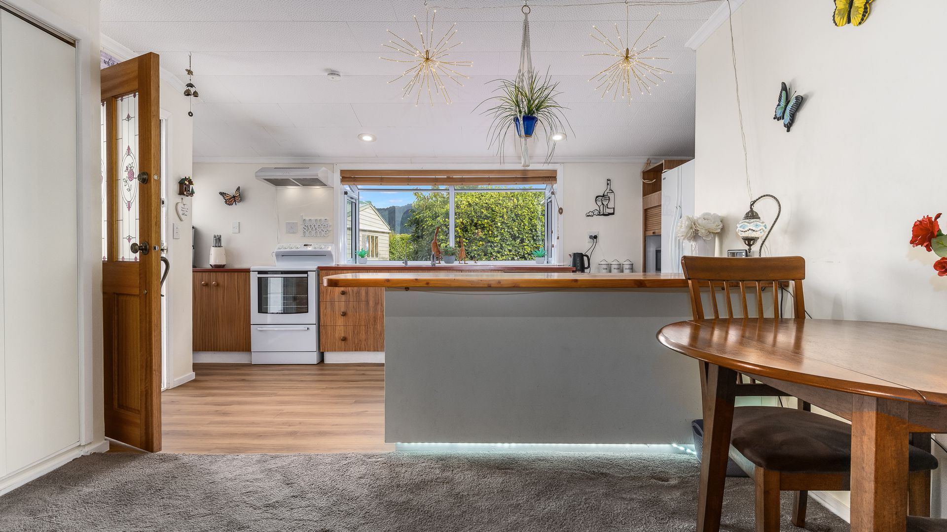 Welcome to 85 Florida Road — a true destination property where privacy, views, and flexibility come together. This beautifully updated two-storey home captures stunning outlooks from almost every window. The heart of the home is the spacious kitchen, offering generous bench space and seamless connection to the dining area so the chef is always part of the conversation. The north-facing lounge is warm and inviting, with room for everyone and effortless flow to the expansive deck — perfect for long Levin evenings and entertaining with the hills as your backdrop.