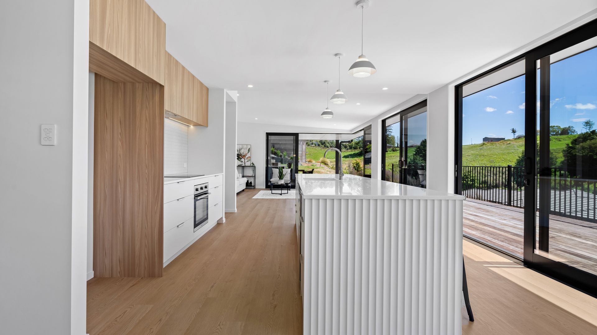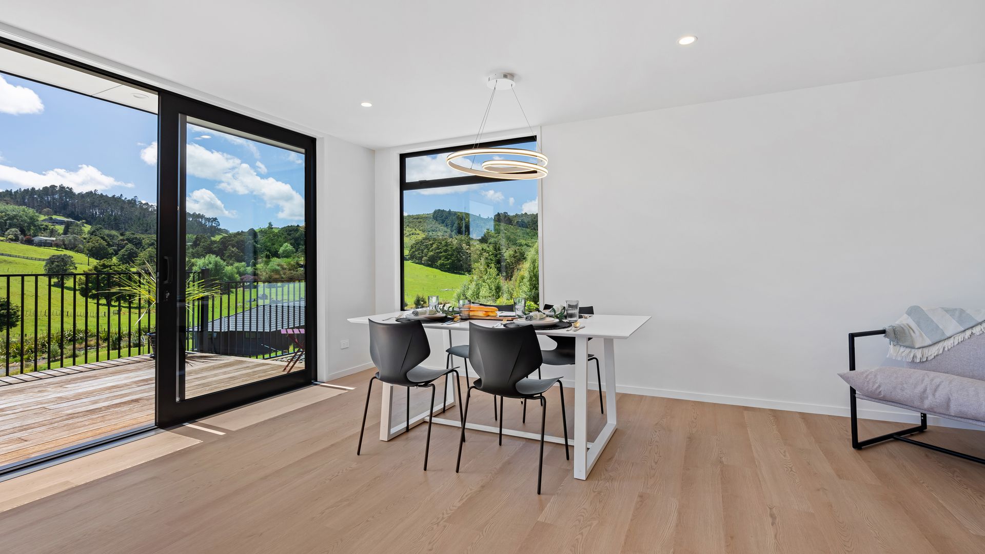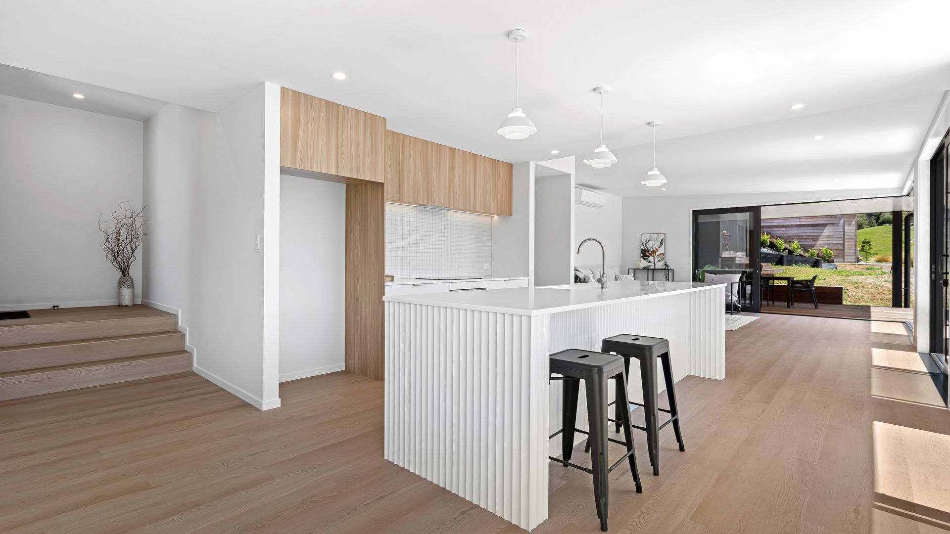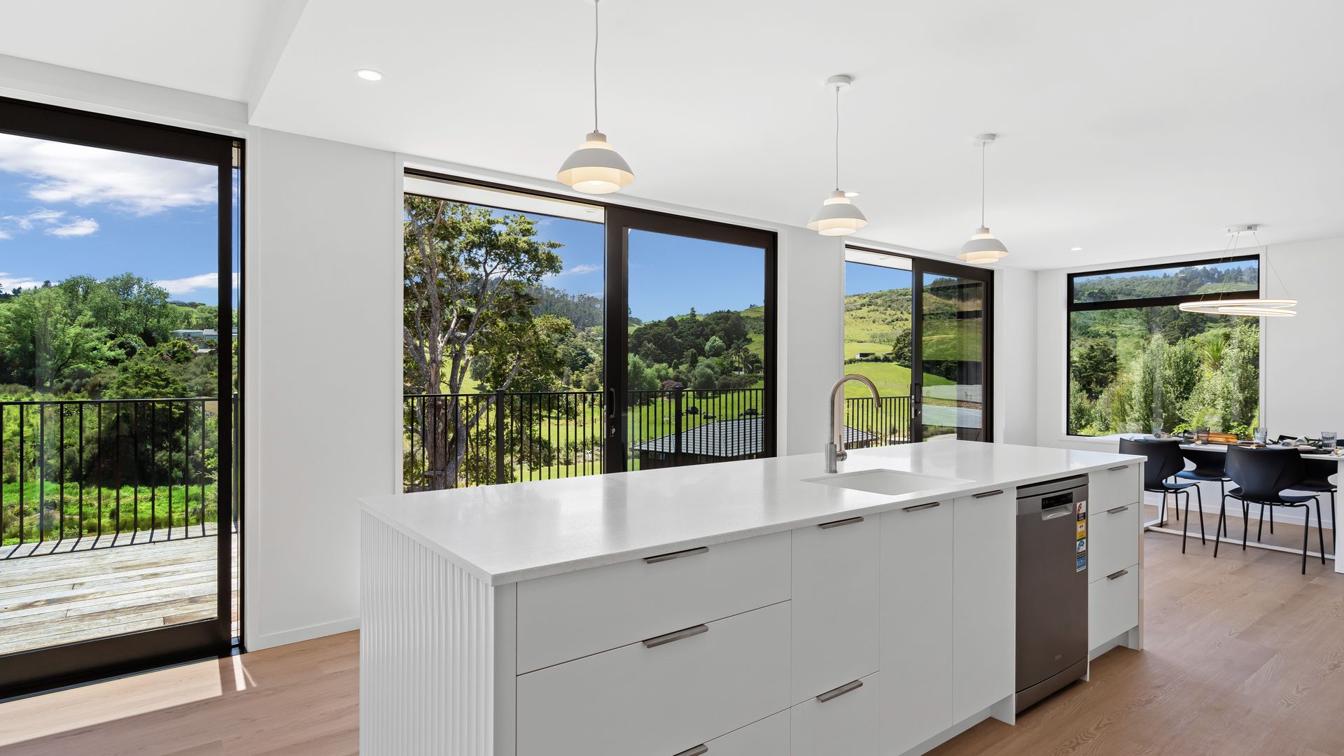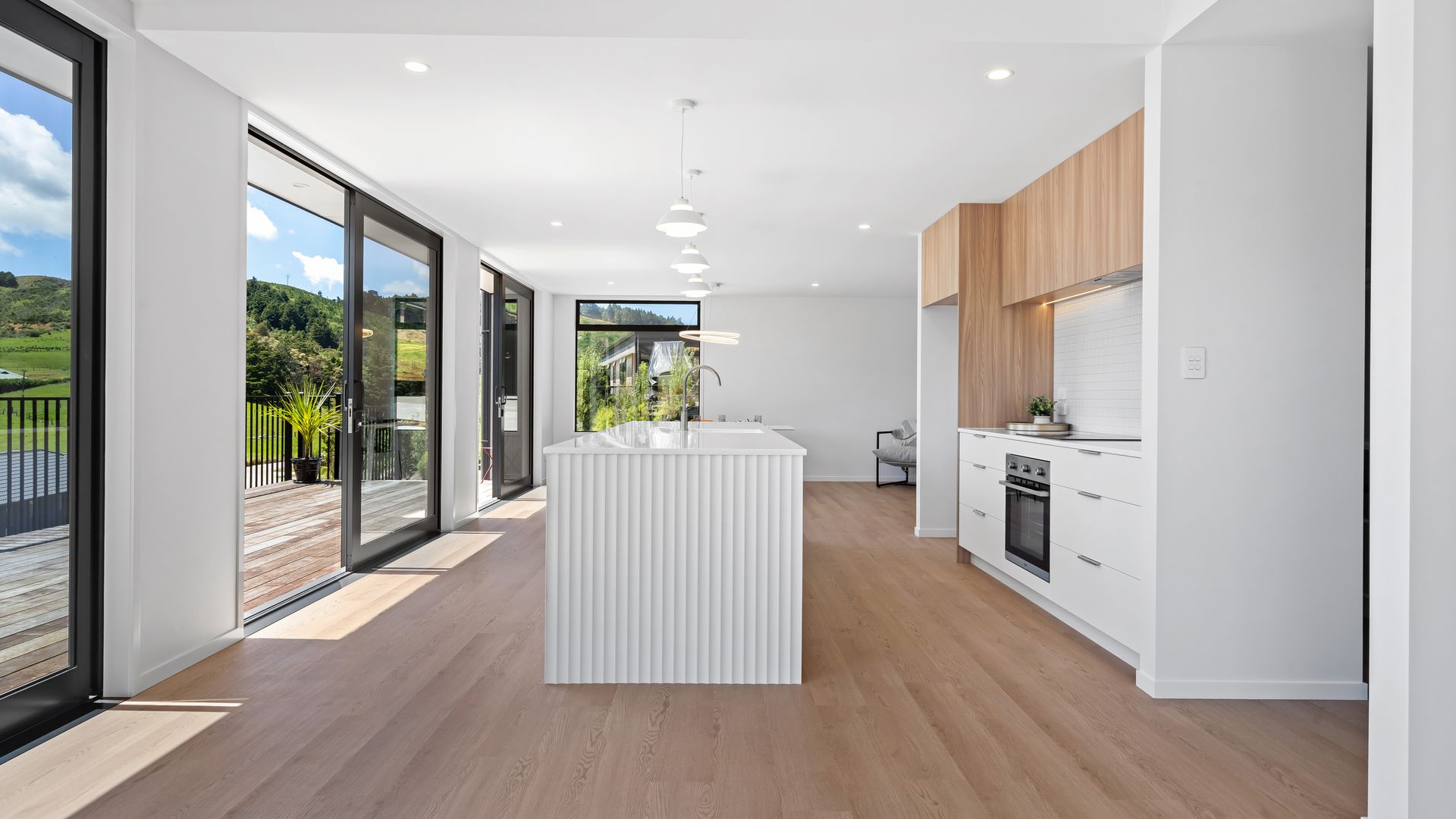 **To download the property files please visit https://ownrealestate.co.nz/property/9-fantail-lane-whareora/ A striking study in modern architecture and quality, this brand new four-bedroom Whareora residence delivers clean geometry, crisp detailing, and a layout that feels purpose-built for contemporary living. Full height glazing runs the length of the home, drawing in light and framing the surrounding hills like moving artwork. Inside, the palette is sleek and restrained - timber textures, matte finishes, and strong linear forms.