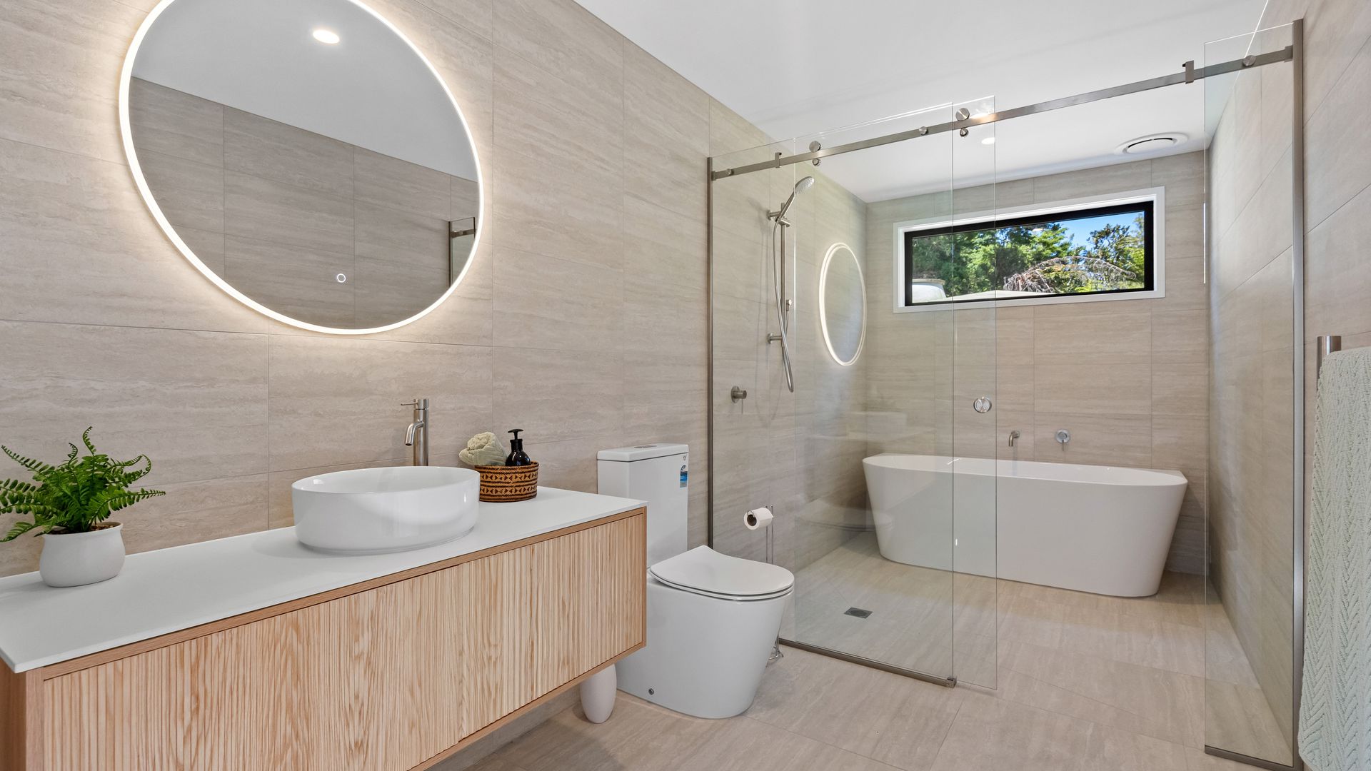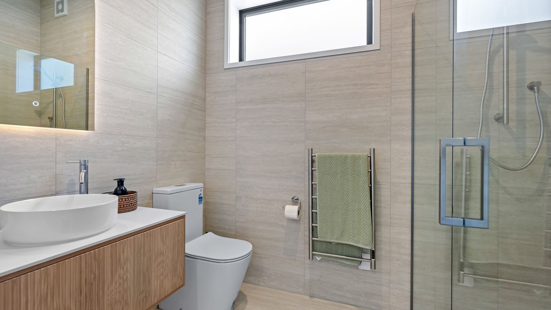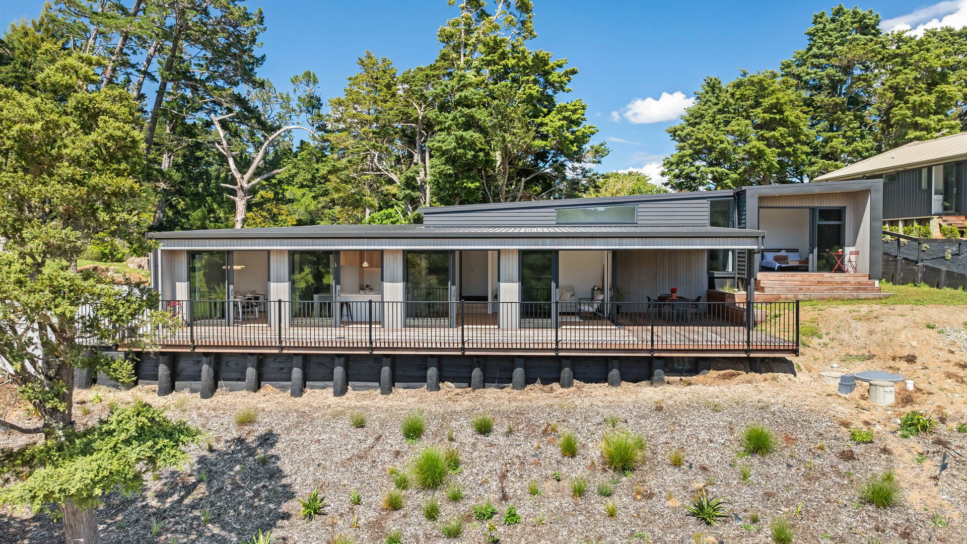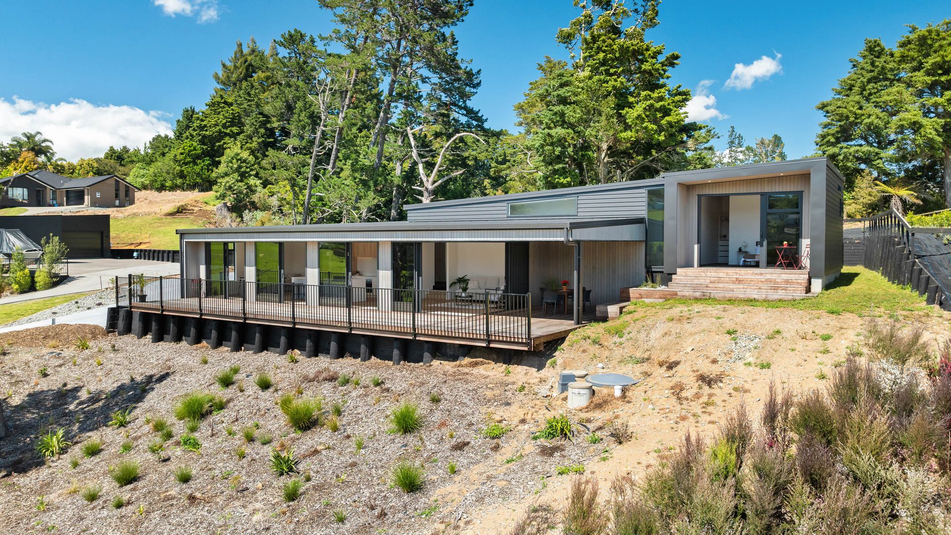 With a streamlined flow, the kitchen sits centre stage offering a sculpted island, large scullery, integrated appliances, and minimalist profile. The entire front of the home leads to a wide, covered hardwood deck, with an alfresco area that extends the architecture outward and holds its own as a genuine feature. The master suite faces north, with its own connection to the outdoors through a ranch slider to a small deck, also providing a walk-in robe and fabulous ensuite. The main bathroom is equally refined: full tiling, freestanding bath, oversized shower, and backlit mirrors that reinforce the contemporary aesthetic. Elevated, with a bush backdrop behind and a rapid link to town out front, this property pairs modern design with everyday practicality. Bold, current, architectural - this is Whareora at its most contemporary.