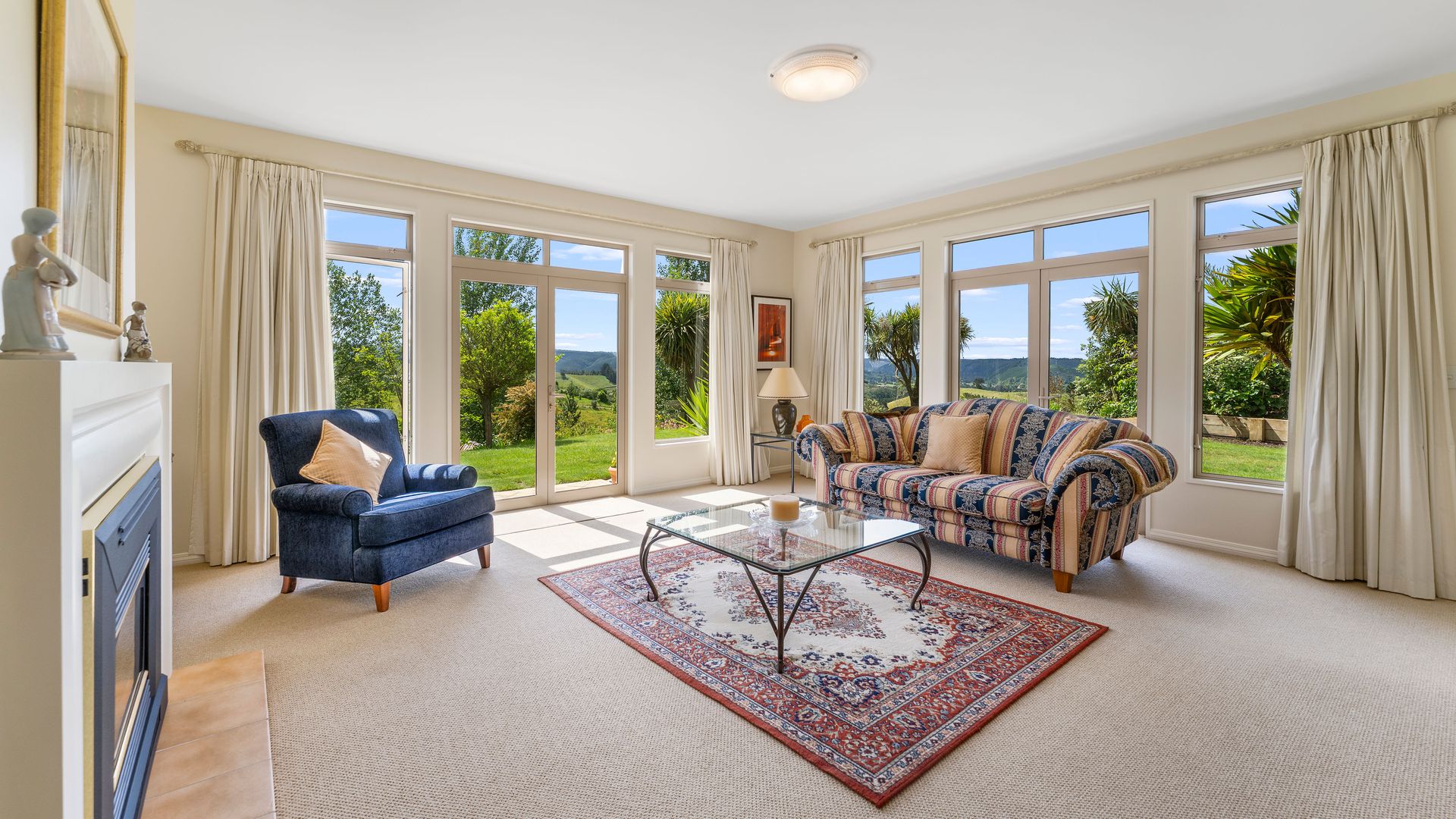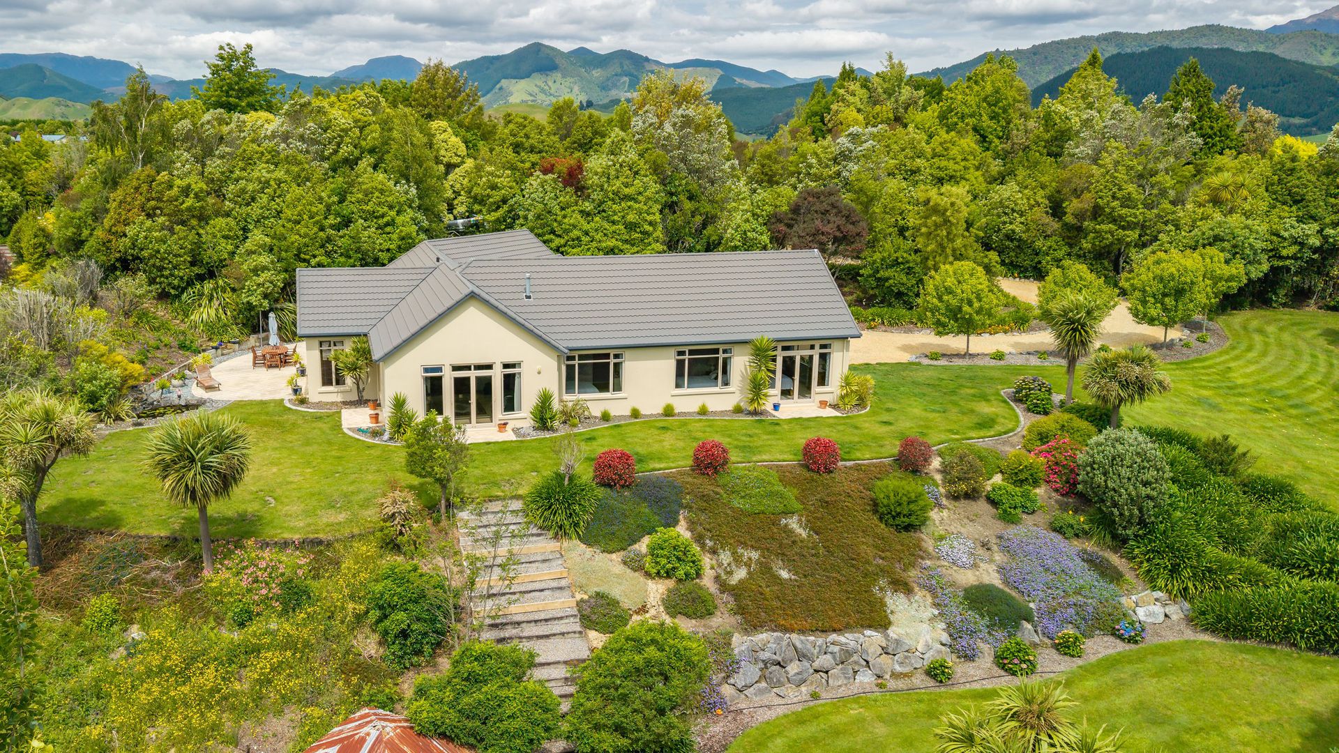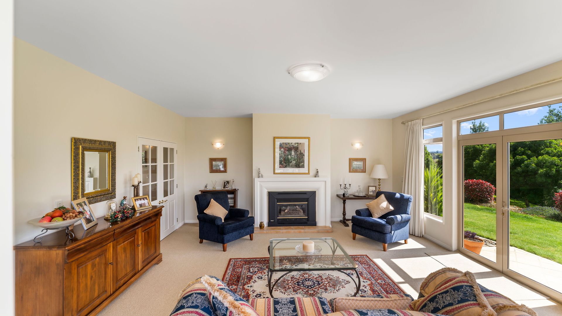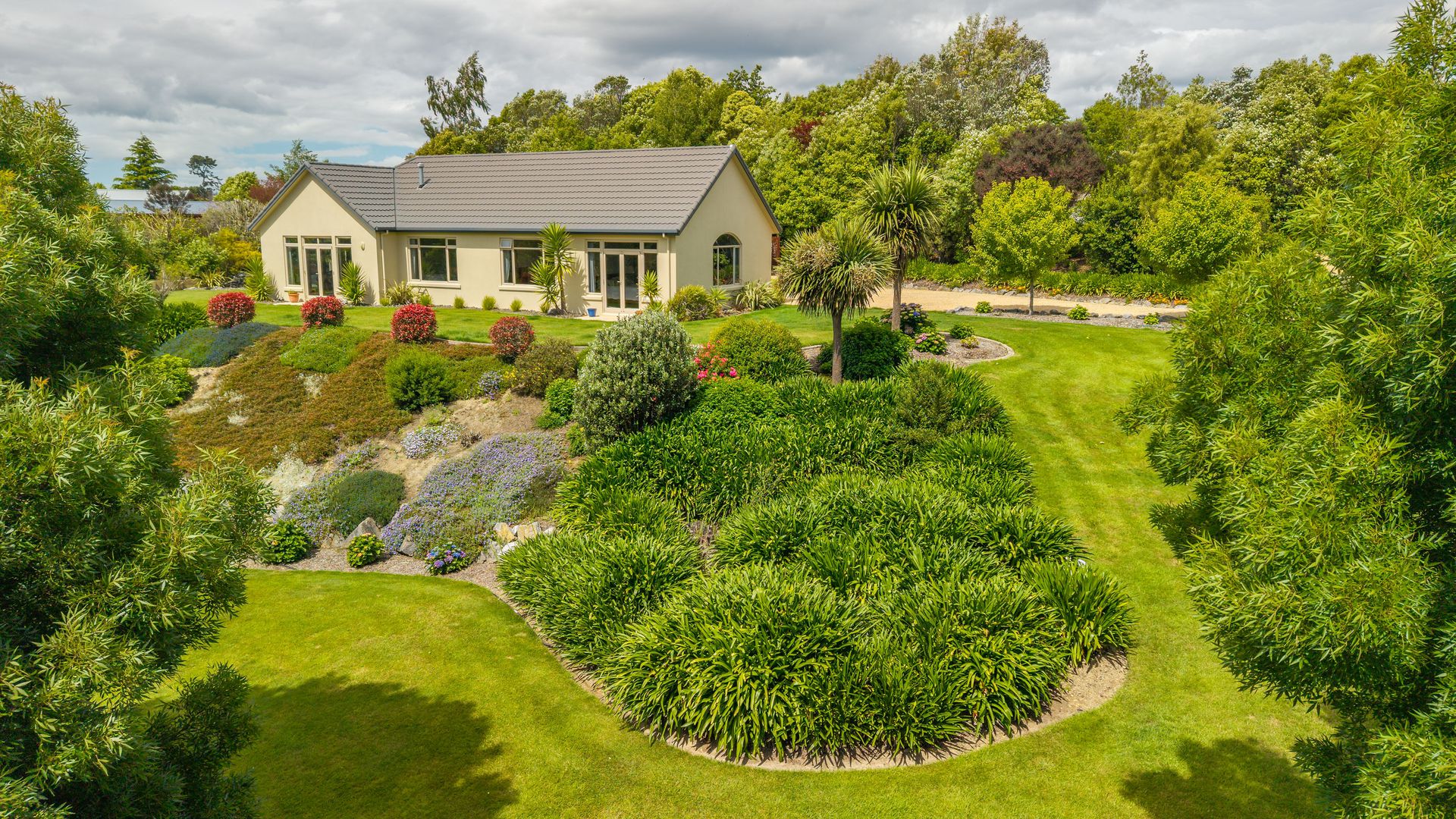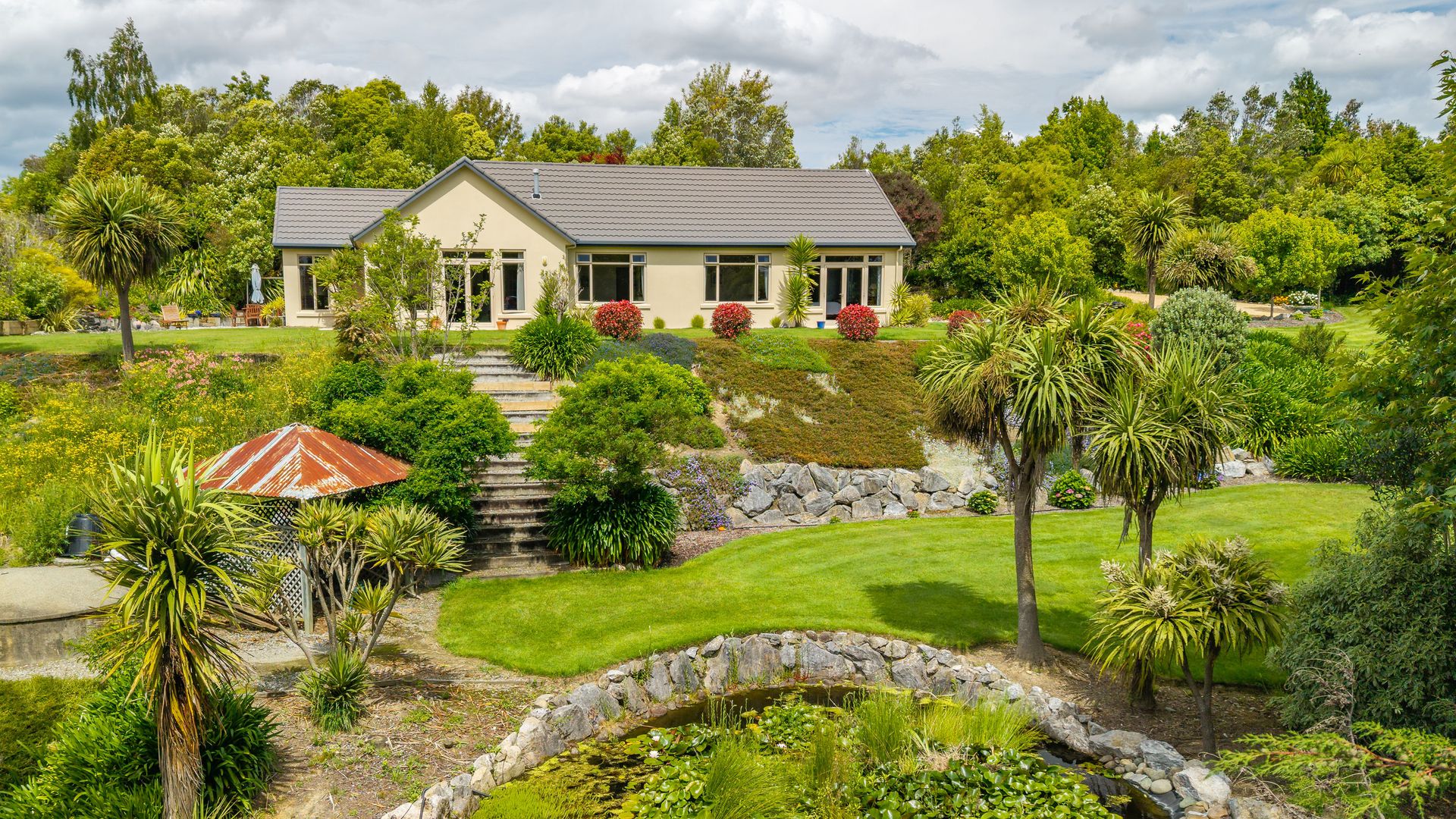 Come through the gates and be prepared to go Wow! You first notice the neat, golden driveway winding through a sublime setting of beautiful mature trees and sweeping lawns that draw your eyes across the long valley views. Then you cant help but notice the grand home set on the edge of the circular drive, totally sheltered from the road by established gardens. Built to impressive but gracious proportions, you are welcomed at the entrance by the double height atrium, with light flowing from generous glazing everywhere you look in this stunning home. From there, you have the option of moving into the kitchen and living area, or through into a separate formal lounge, with the high stud throughout adding to the feeling of spaciousness and light. The kitchen is a delight – with broad granite bench tops punctuated with the warmth of rimu; a 900mm gas hob and split electric oven, a handy twin sink, dishwasher, rangehood and good sized fridge freezer. Past the kitchen are the utility areas of the home – a separate laundry and a carpeted, internal access garage. The main bedroom suite is one of the most beautiful I have seen in a while, with picturebook windows framing your own personal park. The 2 other bedrooms are both well sized, with built in wardrobes and a lovely outlook of their own. A walk in airing and storage cupboard is such a bonus, and the home is heated by a heatpump and gas fire.